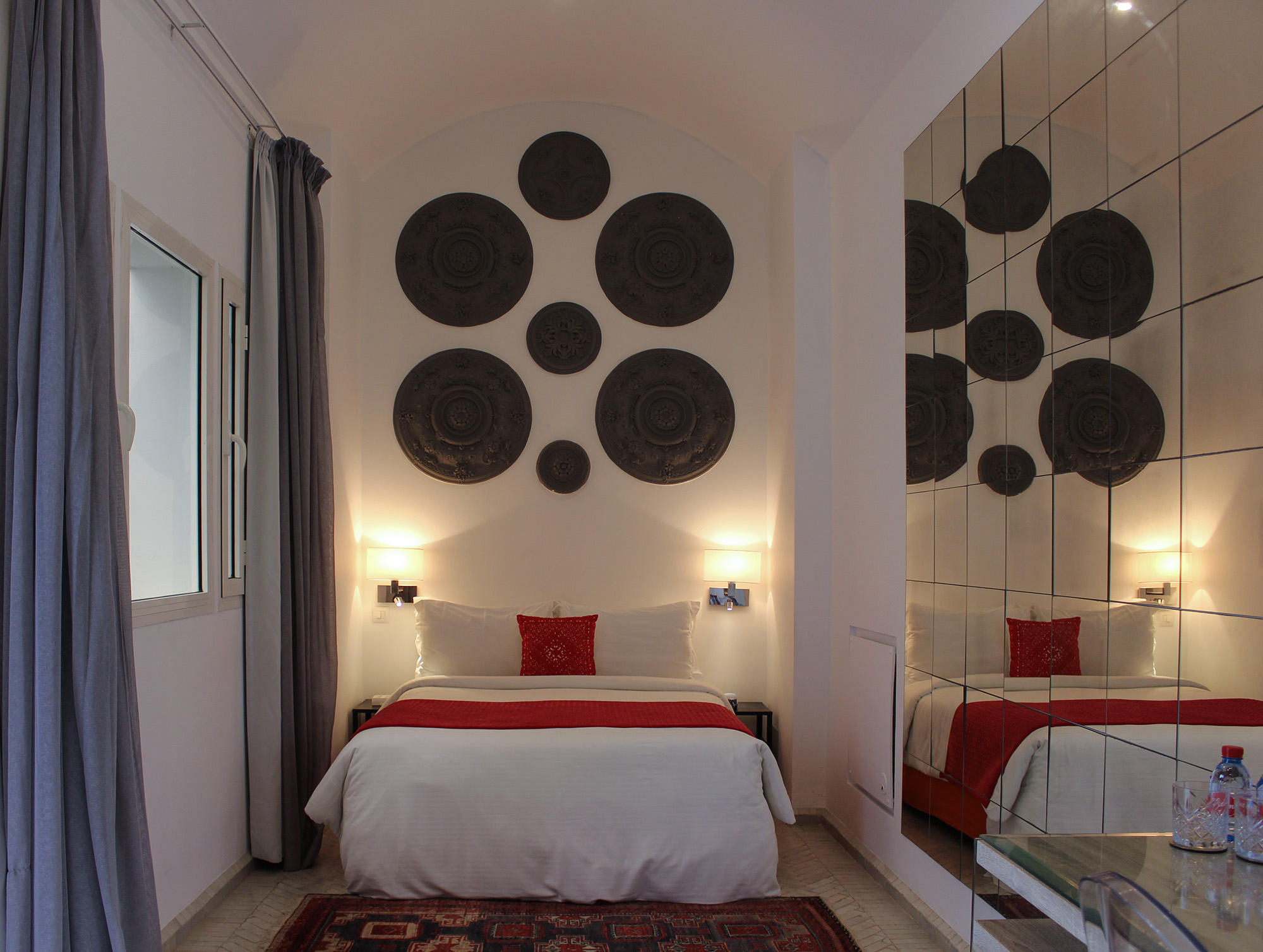En effet, à l’époque Riad Zyo était l’ancien bureau de poste de la vieille Médina de Rabat. De plus, situé au rez-de-chaussée, vous disposez d’un accès direct à la piscine centrale du Riad. Atmosphère cuivrée, voûte en plâtre au plafond. Un univers d’Orient revisité. Cette chambre est uniquement disponible en lit double (140 x 190 cm) et ne peut être préparée en lits séparés.